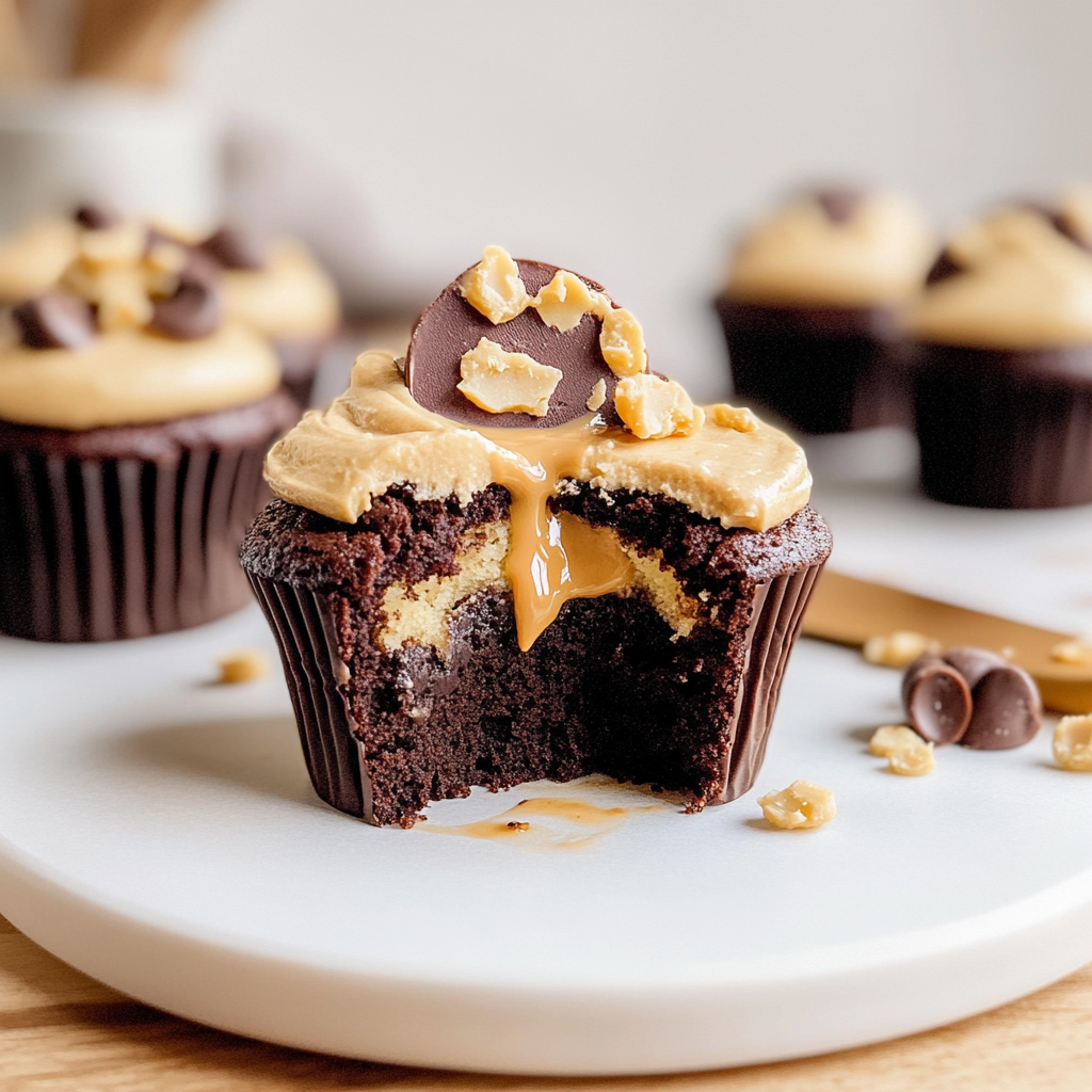 Indulge in the perfect blend of rich chocolate and creamy peanut butter with these delightful cupcakes. A nostalgic treat that promises joy in every bite!