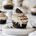 Delight in these fluffy chocolate cupcakes topped with creamy cookies and cream frosting, featuring crunchy cookie bits—a perfect treat for any occasion.