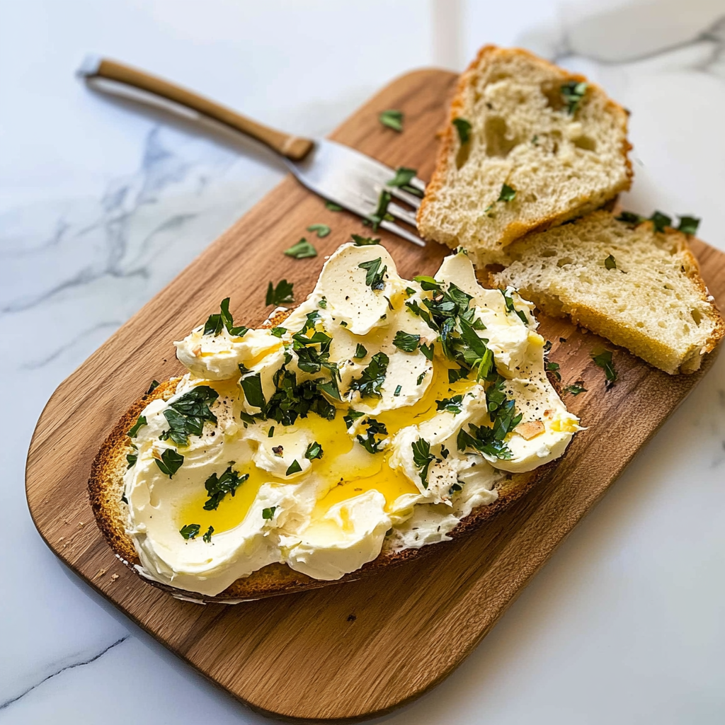 Start by softening your butter at room temperature for a few hours. Next, spread it generously on a wooden board or platter. Then, layer on fresh herbs, spices, and toppings of your choice while your bread toasts in the oven for the perfect pairing.