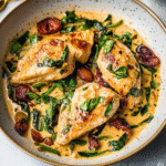 In summary, creamy Tuscan chicken is a delightful dish that combines tender chicken with a luscious sauce featuring sun-dried tomatoes and spinach. It’s versatile enough to pair with various sides and can be adapted for healthier options too. Whether you’re cooking for family or guests, this recipe promises satisfaction and flavor in every bite. Give it a try for your next dinner—you won’t be disappointed!