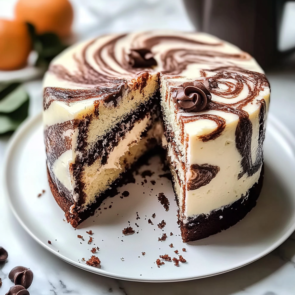 Experience the perfect harmony of rich chocolate and sweet vanilla in this classic marble cake, ideal for any celebration or a cozy afternoon treat.
