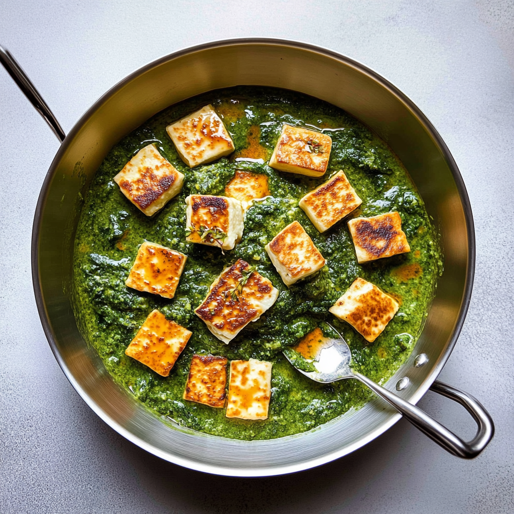 Indulge in the rich flavors of palak paneer, featuring fresh spinach and soft paneer, perfect for a comforting meal any day of the week.