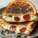 Savor the delightful crunch and creamy goodness of this Pepperoni Grilled Cheese, featuring melty cheese layered with savory pepperoni for a comforting twist on a classic favorite.