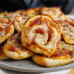Pizza pinwheels are delicious bite-sized snacks made from pizza dough filled with your favorite toppings like cheese, pepperoni, and vegetables. After spreading the filling on the dough, you roll it up tightly and slice it into rounds. These flavorful bites are perfect for parties, game days, or a quick snack at home.