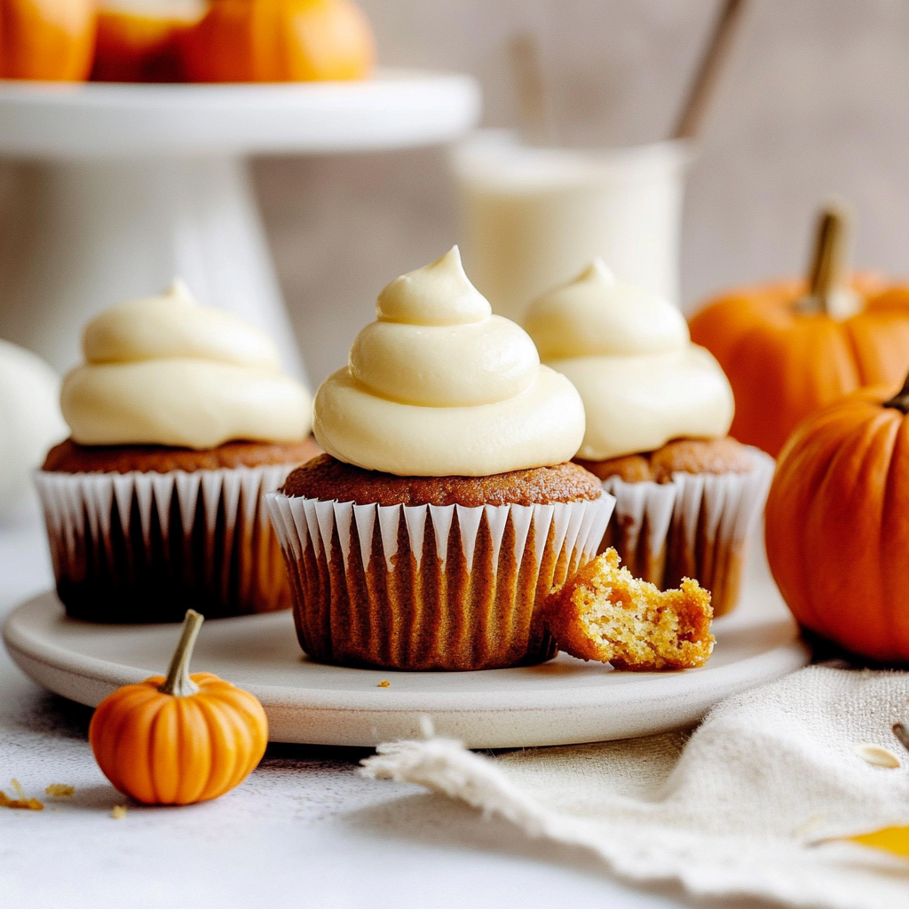 Delight in these fluffy pumpkin cupcakes, infused with warm spices and topped with creamy frosting. Perfect for any occasion, they bring a taste of autumn to your table.