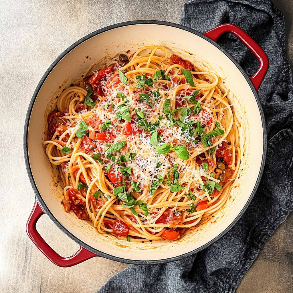 Indulge in a vibrant, flavorful tomato basil pasta that captures the essence of summer with every bite. Perfect for sharing with loved ones or enjoying solo.