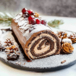 There’s something undeniably magical about a yule log cake as it sits proudly on the holiday table, dusted with powdered sugar like fresh snow. Its rich chocolate sponge, rolled and filled with a velvety cream, evokes nostalgia and joy, making your taste buds dance with delight. You can almost hear the crackling of the fireplace in the background as you slice into this delicious dessert.